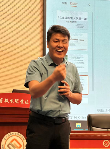 橙式(辽宁)科技集团有限责任公司董事长姚长龙 作为数字商务学院的 “老朋友”,已连续六年为新生开展开学第一课讲座。他以 “高职新生如何把握三年大学时光、学好专业知识” 为核心,结合自身职业经历与观察,从学习规划、技能提升、心态调整三个维度给出建议。他强调,高职学习需注重 “理论 + 实践” 的结合,鼓励新生主动参与实训项目、技能竞赛,提前积累职场经验,为未来就业打下坚实基础,亲切的分享引发新生强烈共鸣。