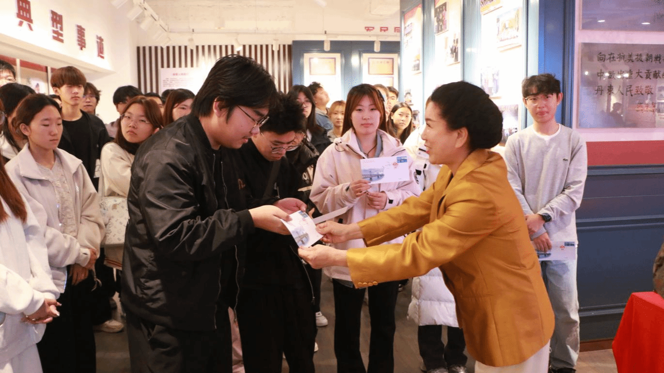 在党总支书记陈华书记的带领下,参观了丹东市鸭绿江双拥文化研究院开展爱国主义教育基地。通过观摩抗美援朝历史展品、聆听老兵事迹讲解,新生们直观感受“保家卫国、舍生忘死”的红色精神。陈华书记强调:“珠宝鉴定不仅是技术活,更要怀赤子心——就像曲静董事长打造的党建阵地,让专业发展始终与家国命运同频共振。”同时设置了关于抗美援朝问答环节,学生们都积极参与,这种“思政+专业”的教育模式,正是人才培养的核心理念。
