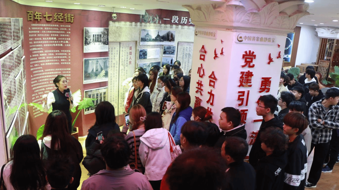 首先由中国黄金曲静珠宝办公室主任冯笑茹,系统讲解丹东作为边境商都的历史沿革与七经街“百年珠宝商街”的形成脉络。“这条街不仅见证了丹东从开埠到兴盛的历程,更孕育了东北珠宝行业的诚信基因。”冯笑茹结合商圈党群服务中心的红色印记,阐释了“珠宝工艺与商道文化共生”的发展逻辑,让新生理解专业背后的文化底蕴。